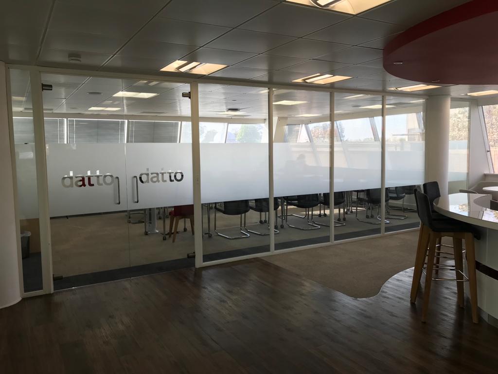 When IT Company datto based in Richmond required privacy for their offices and meeting rooms the team at five fish installed bands of etch vinyl to achieve the look they wanted.